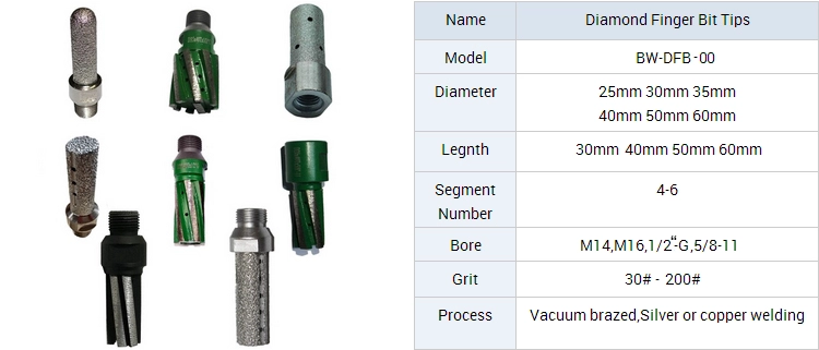 Diamant-Finger-Bits sind ideal für die schnelle Zerspanungsleistung sowie Abrichten bis Sägelinien, die ausgelegt ist, Granit, Stein und Marmor zu schneiden.