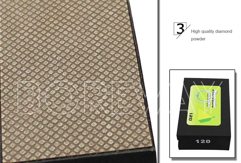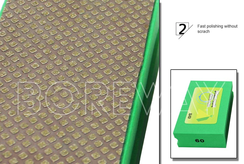 Verwenden Sie einen starken Klebstoff, um den Schleif- und Kunststoffschaumkleber zu gewährleisten. BOREWAY. Diamant-Handpads. Habe hohe Poliergeschwindigkeit und Helligkeit haben. Es wird das Material beim Schleifen und Polieren nicht verschmutzen.