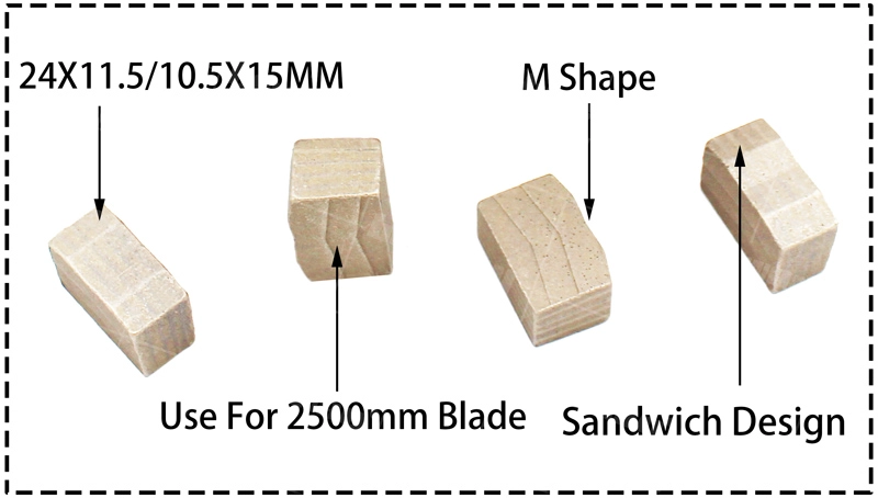 Steinblock Schneiden Diamantsegmente HerstellerDie Segmentgröße ist 24x11,5 / 10,5 x 15 mm.