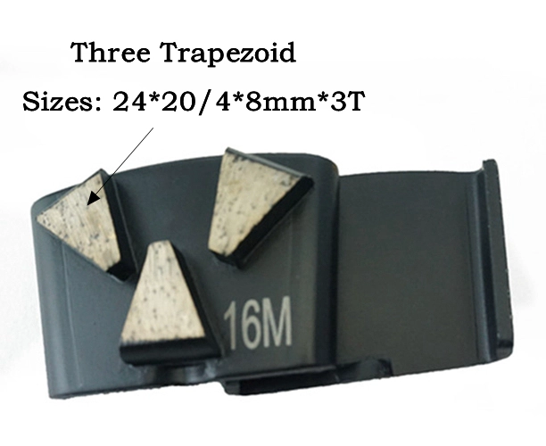Das Folgende sind normale Spezifikationen Drei Trapezsegmente HTC Betonschleifstein für Betonboden: