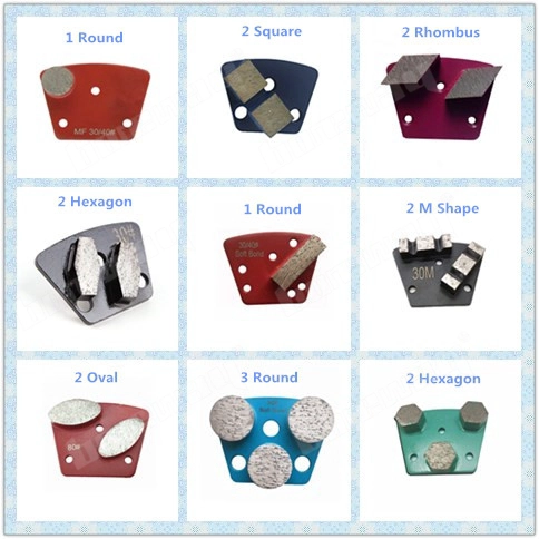 5. Segment de deux tours Tampon de meulage trapézoïdal en métal, ou un autre nom appelé segment de broyage trapézoïdal, tapis de broyage trapézoïdal, sabot de broyage trapézoïdal, les plaquettes de meulage en diamant à liant métallique les plus appropriées spécialement pour la préparation de la surface du sol, enlèvement rapide des matériaux avec une constance de qualité.
