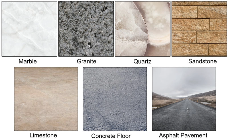 - पीस सामग्री: कंक्रीट, डामर, प्राकृतिक पत्थर, कृत्रिम पत्थर
