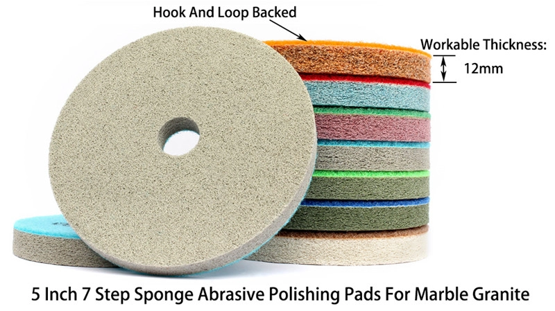 संगमरमर ग्रेनाइट के लिए 5 इंच 7 कदम स्पंज घर्षण पॉलिशिंग पैड