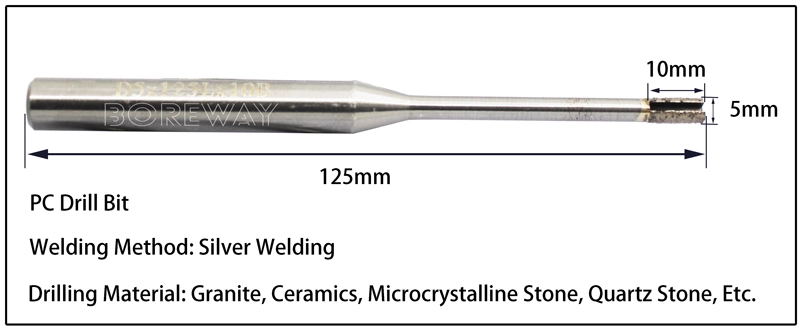 डायमंड पीसी ड्रिल बिट का व्यापक रूप से प्रसंस्करण और ड्रिलिंग ग्रेनाइट, संगमरमर, मिट्टी के बरतन इत्यादि के लिए उपयोग किया जाता है। उत्पाद तेज, टिकाऊ और टूटने में छोटे होते हैं, और उपयोगकर्ताओं द्वारा अच्छी तरह से प्राप्त होते हैं।