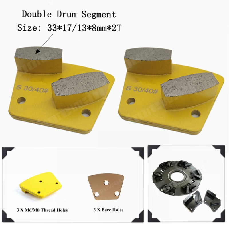 डबल सेगमेंट्स ट्रेपोजॉइड पीस पैड्स। सामान्य (कंक्रीट, पत्थर) पीस उपयोग के लिए उपयुक्त है, जबकि ज्यादातर वे पेंट, गोंद, epoxy हटाने और फर्श कोटिंग, उच्च गुणवत्ता और उच्च दक्षता, लंबे जीवन काल के लिए उपयोग किया जाता है।
