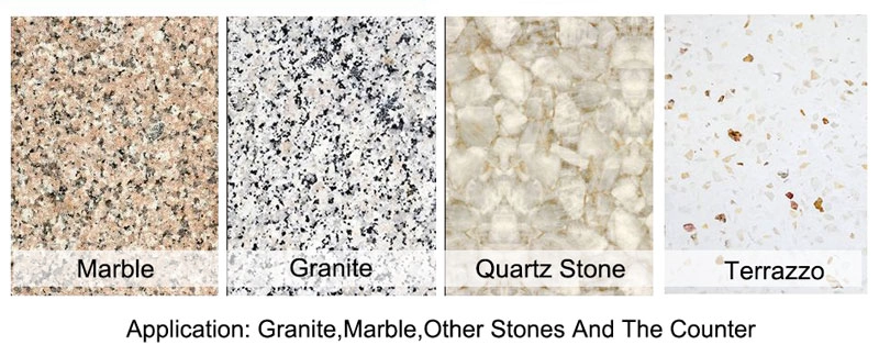 - आवेदन: ग्रेनाइट, संगमरमर, अन्य पत्थरों और काउंटर