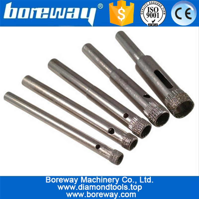 Per scopi di gioielli e fori di precisione in pietra preziosa, si consiglia di utilizzare i piccoli bit di trapano diamante che hanno una solida, fine fine o una punta. Farenon Utilizzare bit Diamond Drill su metallo, legno morbido, intonaco o plastica morbida. Questi materiali sono troppo morbidi e causerà i diamanti sulla punta del trapano. (Bit Diamond Bur Core con foro) Quando i fori di perforazione in metalli morbidi, materie plastiche e legno utilizzano bit di trapano in acciaio ad alta velocità (HSS) e per forare i fori di perforazione nei metalli duri utilizzano bit di trapano in carburo.