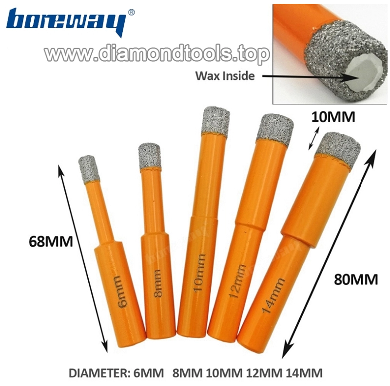 Dia 8mm Vaccum Brazed Diamond Drill Drill Bit 10mm Gambo rotondo perforatura a secco per muratura in pietra
