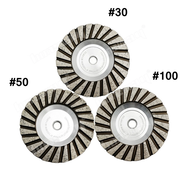 La base in alluminio delle ruote a tazza diamantate offre leggerezza e silenziosità. # 30 per la macinazione grossolana del primo passaggio, # 120 per la macinazione fine del passaggio successivo.