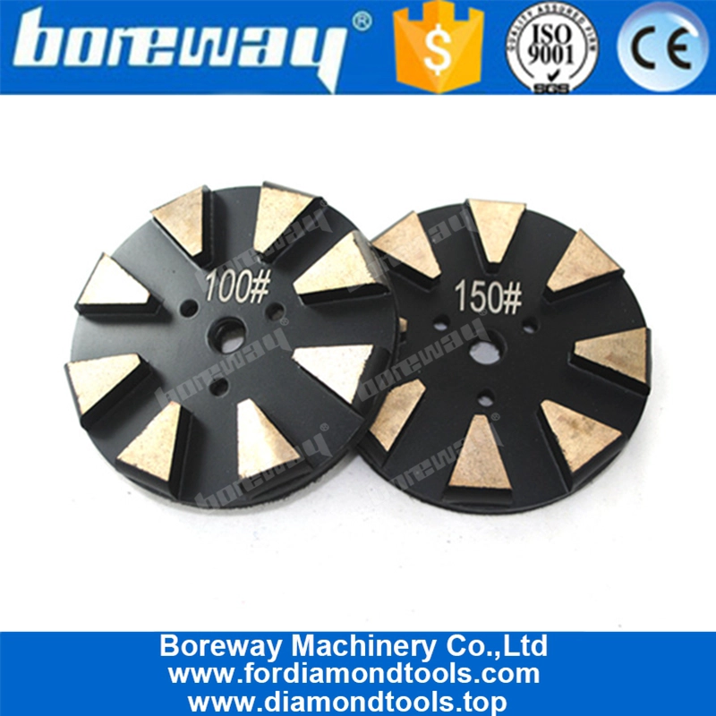 3.Platorello in metallo con gancio e anello da 4 pollici è progettato specificamente per i professionisti del restauro di pavimenti in calcestruzzo, per una rapida rimozione di qualsiasi materiale, leghe dure, medie o morbide disponibili per i tipi di calcestruzzo, utilizzati su rettificatrici.