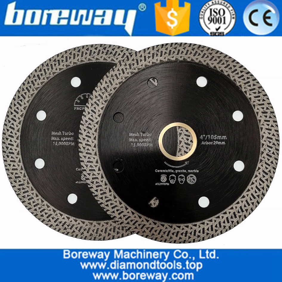 ホットプレス焼結メッシュターボダイヤモンド刃 は 大理石、花崗岩、磁器、セラミックタイル、砂岩、石英、硬質材料などを切断するために利用可能です。