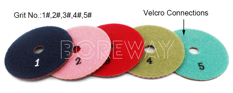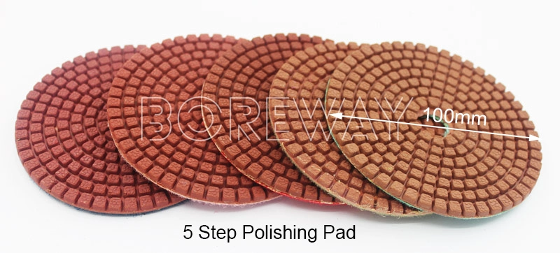 5段階研磨パッドは、大理石、花崗岩、または他の石の研磨面にはバッカーに取り付けられている石のパッドが使用されています。