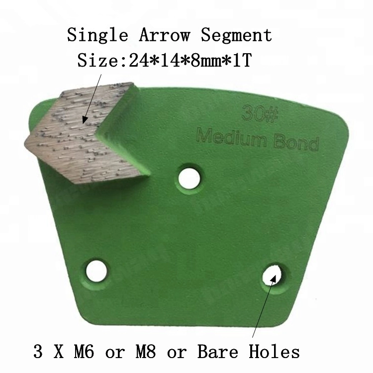以下は通常の仕様です 台形金属ボンドダイヤモンド研削パッドシングル矢印セグメント付き床研削靴: