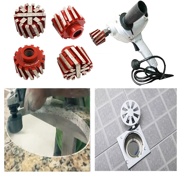 Using diamond drum wheel is the fastest way to remove material after cutting out sink holes with a diamond blade, or to shape a radius on the outside edge.