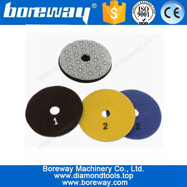 Поставка 4-дюймовая трехшаговая гранитная гибкая алмазная сухая полировальная подушка, 3-х шаговая мраморная алмазная полировальная подушка